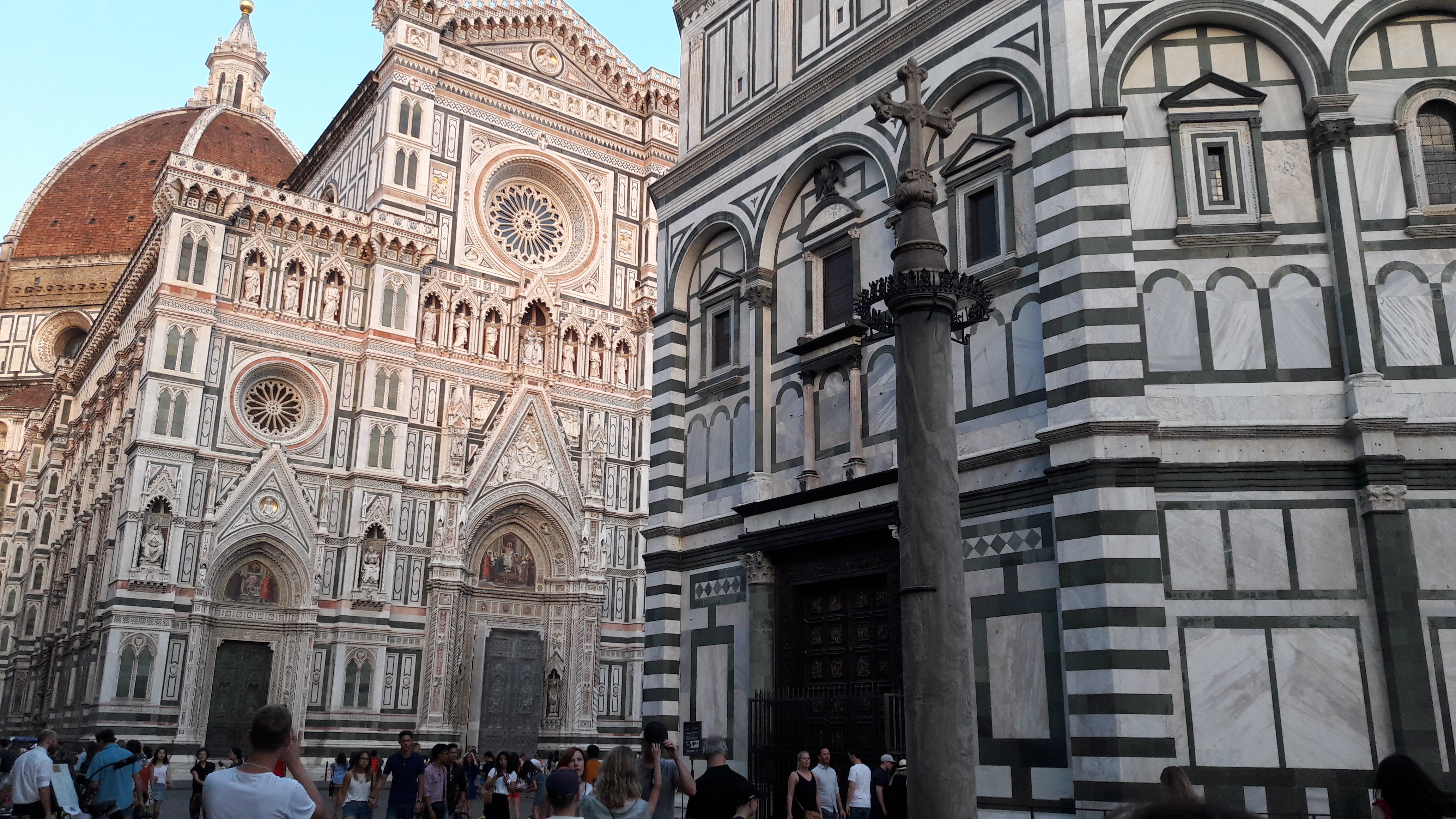 Questa foto mostra il magnifico Duomo di Firenze ( Chiesa di Santa Maria del Fiore) con il Battistero di San Giovanni, in cui avveniva il rito del battesimo. La cattedrale è opera dell’artista Arnoldo di Cambio mentre la Cupola è stata progettata da Filippo Brunelleschi, su commissione di Cosimo Medici, e aggiunta successivamente.